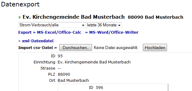 Gebäude- und Zählerdaten exportieren