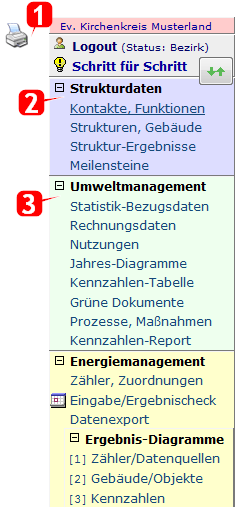 - Der Zugriff auf die Rubriken „Umweltmanagement“ und „Energiecontrolling“ richtet sich nach dem Profil, das jeweils den einzelnen Benutzenden zugeordnet ist (beide Rubriken oder nur eine einzige).